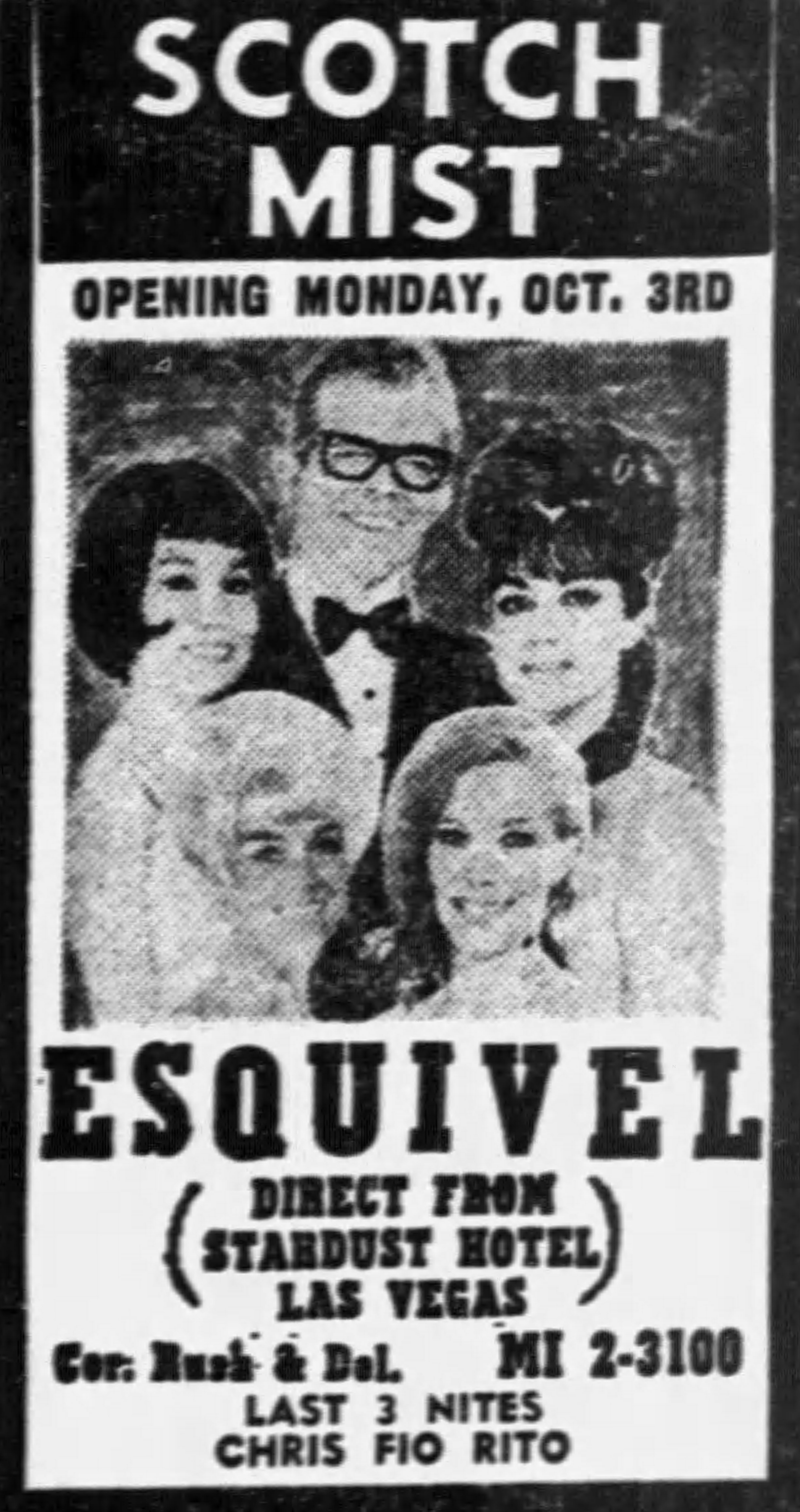 Esquivel at Scotch Mist, Rush & Delaware – Chicago Tribune, September 30, 1966 April 22, 2018 / Pizza Hounds