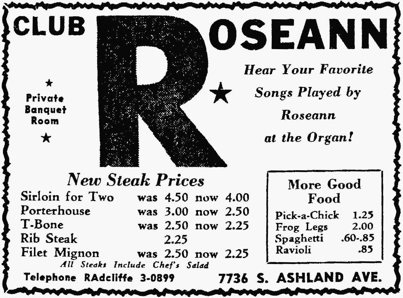 Club Roseann, 7736 S. Ashland – Southeast Economist, February 17, 1949 March 16, 2018March 18, 2018 / Pizza Hounds