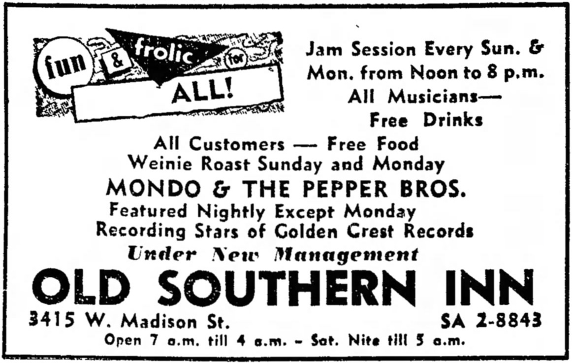 Mondo & the Pepper Bros. at Old Southern Inn, 3415 W. Madison – The Garfieldian, July 27, 1960 March 11, 2018March 14, 2018 / Pizza Hounds