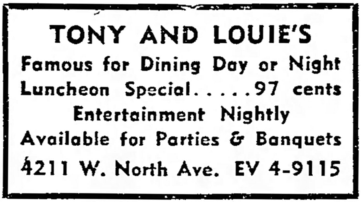 Tony and Louie’s, 4211 W. North Ave. – The Garfieldian, November 11, 1959 March 30, 2018April 6, 2018 / Pizza Hounds