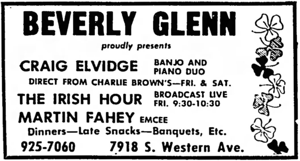 Craig Elvidge, The Irish Hour, Martin Fahey at Beverly Glenn, 7918 S. Western Ave. – The Garfieldian, June 28, 1972 March 11, 2018March 16, 2018 / Pizza Hounds