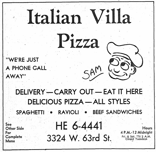 Italian Villa Pizza, 3324 W. 63rd, Chicago – Independent Directory, 1976 – Oak Lawn Public Library December 20, 2018 / Pizza Hounds