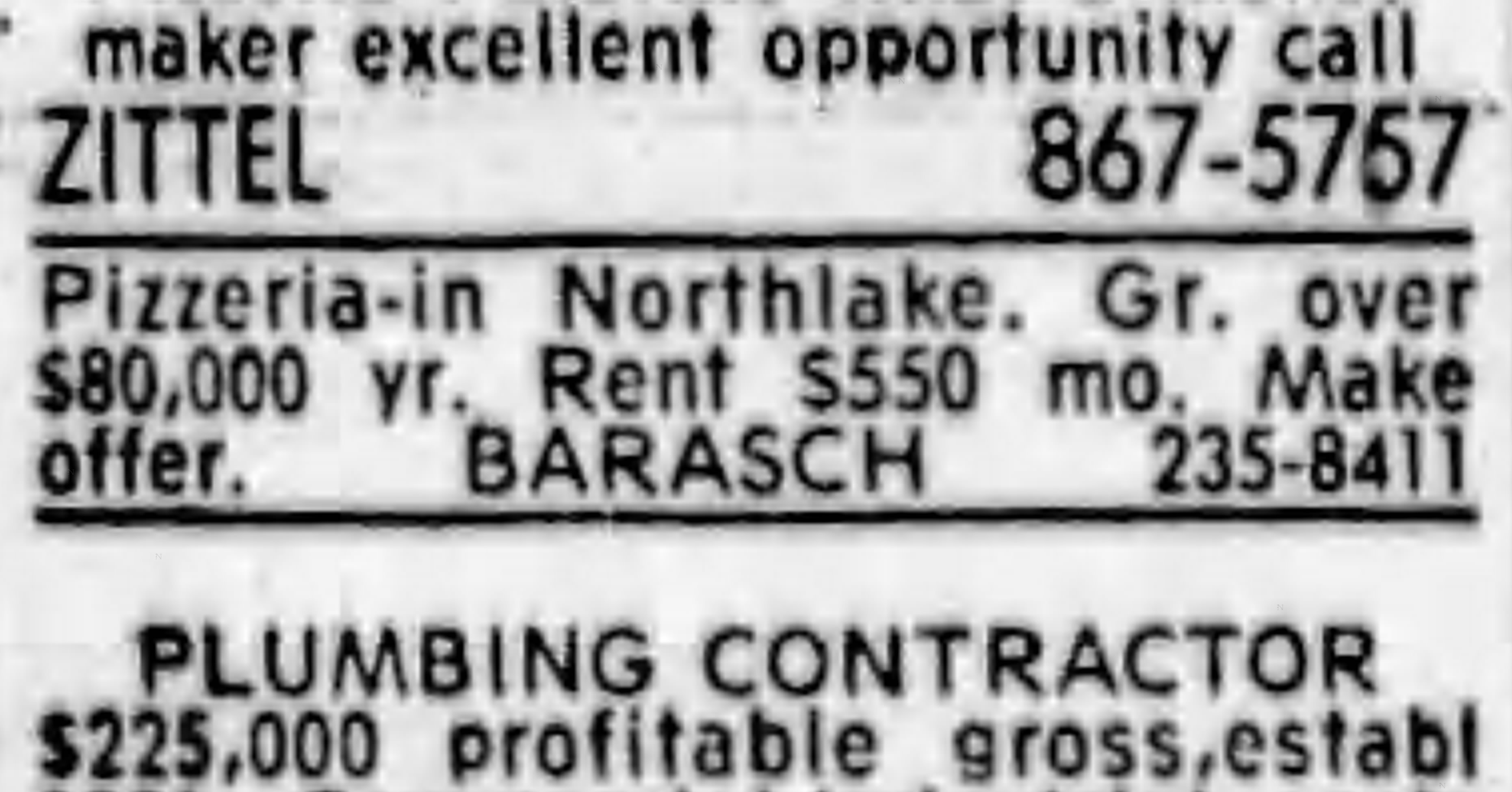 Pizzeria in Northlake For Sale – Chicago Tribune, March 8, 1981 March 31, 2018April 9, 2018 / Pizza Hounds