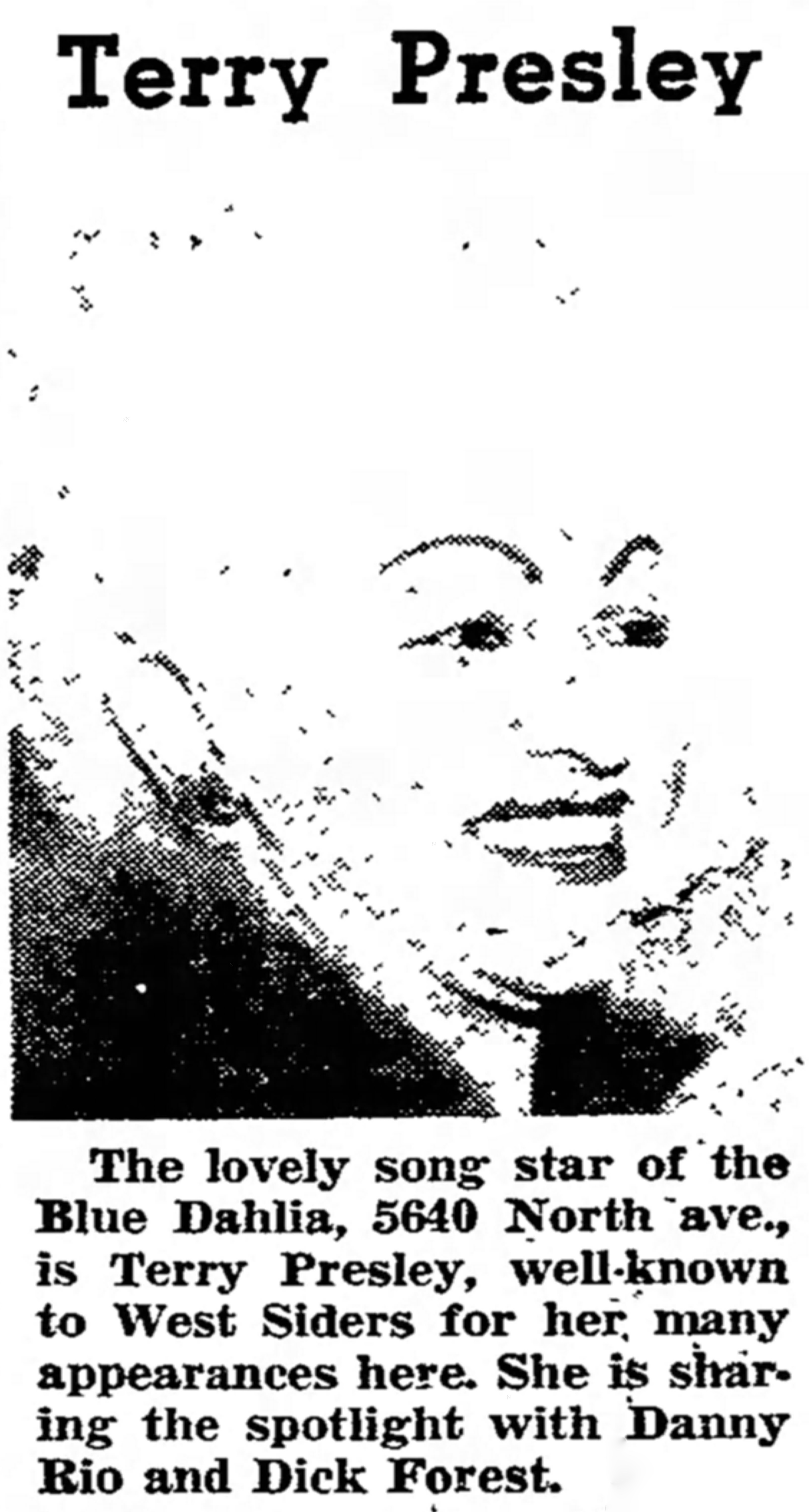 Terry Presley at the Blue Dahlia, 5640 W. North Ave., with Danny Rio and Dick Forest – The Garfieldian, March 25, 1959 March 31, 2018March 31, 2018 / Pizza Hounds