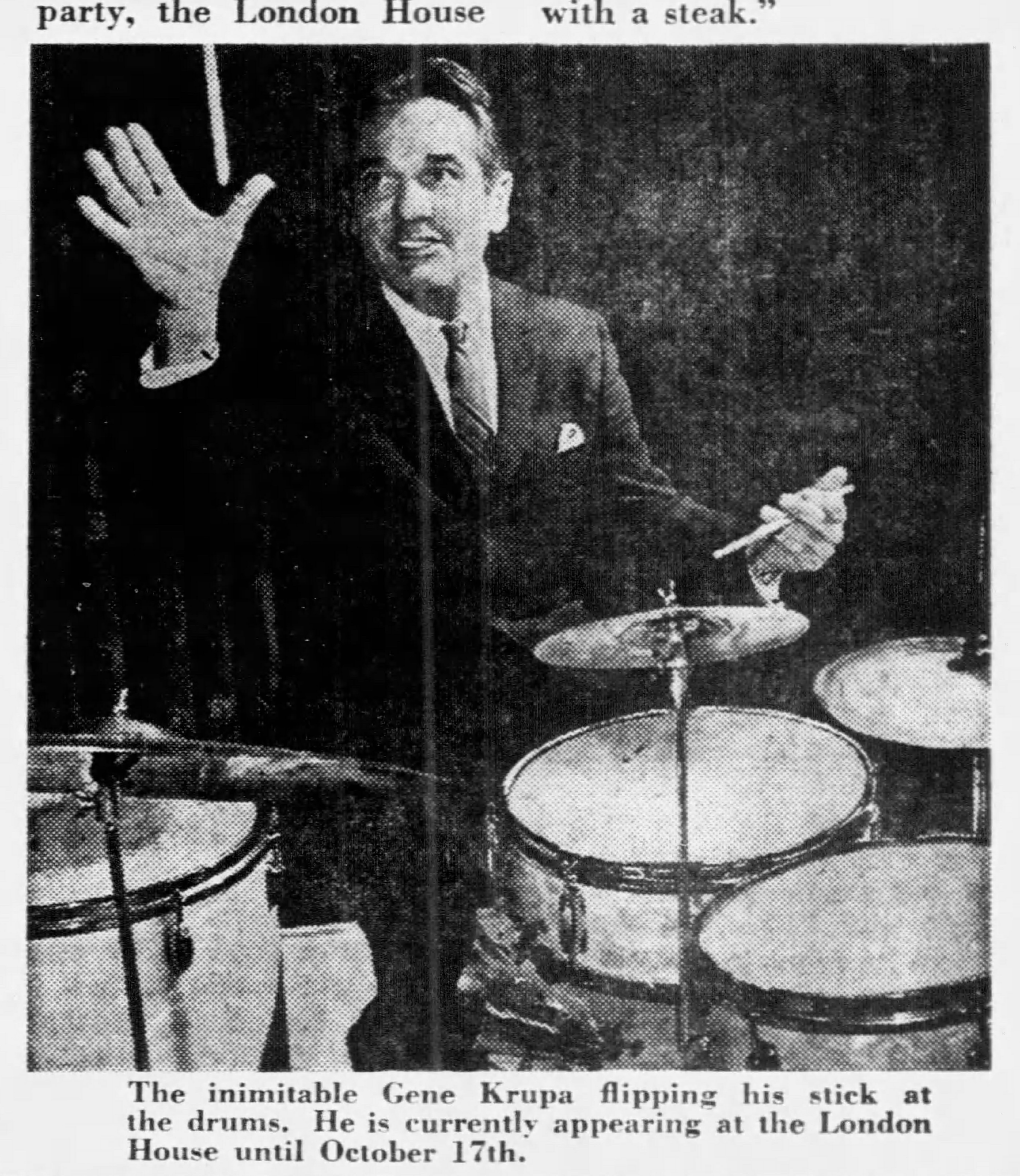 Gene Krupa at the London House – Chicago Tribune, October 7, 1965 March 31, 2018March 31, 2018 / Pizza Hounds