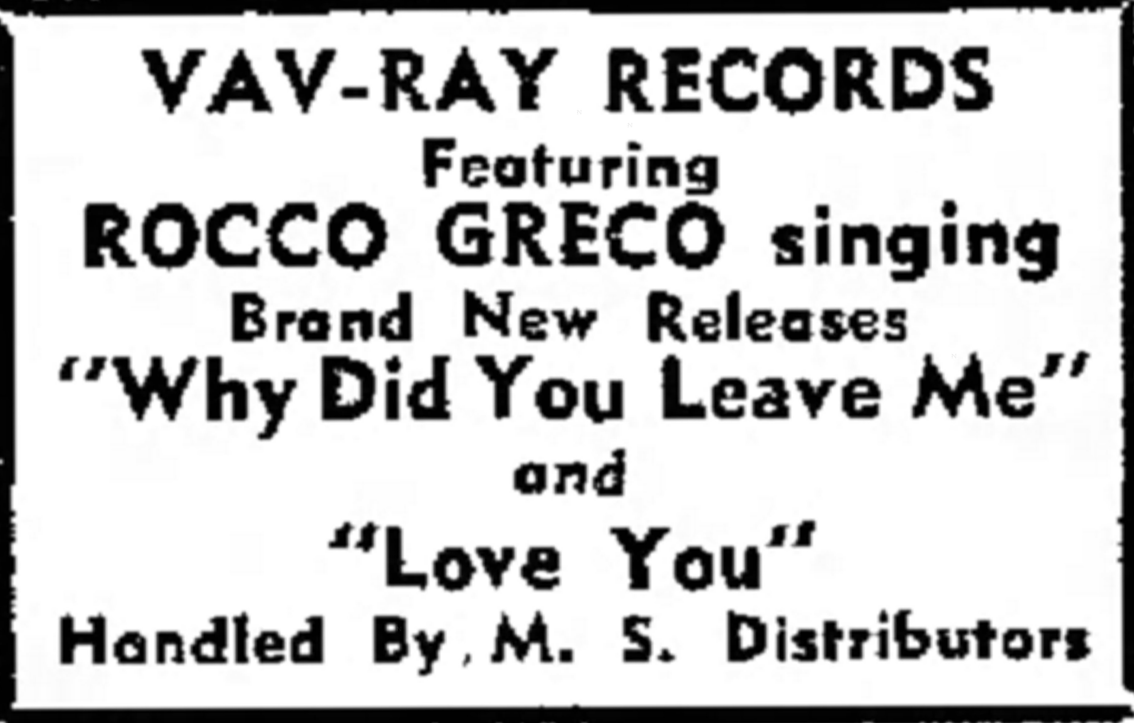 Vav-Ray Records Release of Rocco Greco’s New Record – The Garfieldian, March 7, 1962 April 11, 2018April 17, 2018 / Pizza Hounds