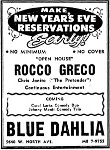 New Year’s Eve with Rocco Greco, Chris Janito at the Blue Dahlia, 5640 W. North Ave. – The Garfieldian, December 29, 1960 April 11, 2018April 22, 2018 / Pizza Hounds