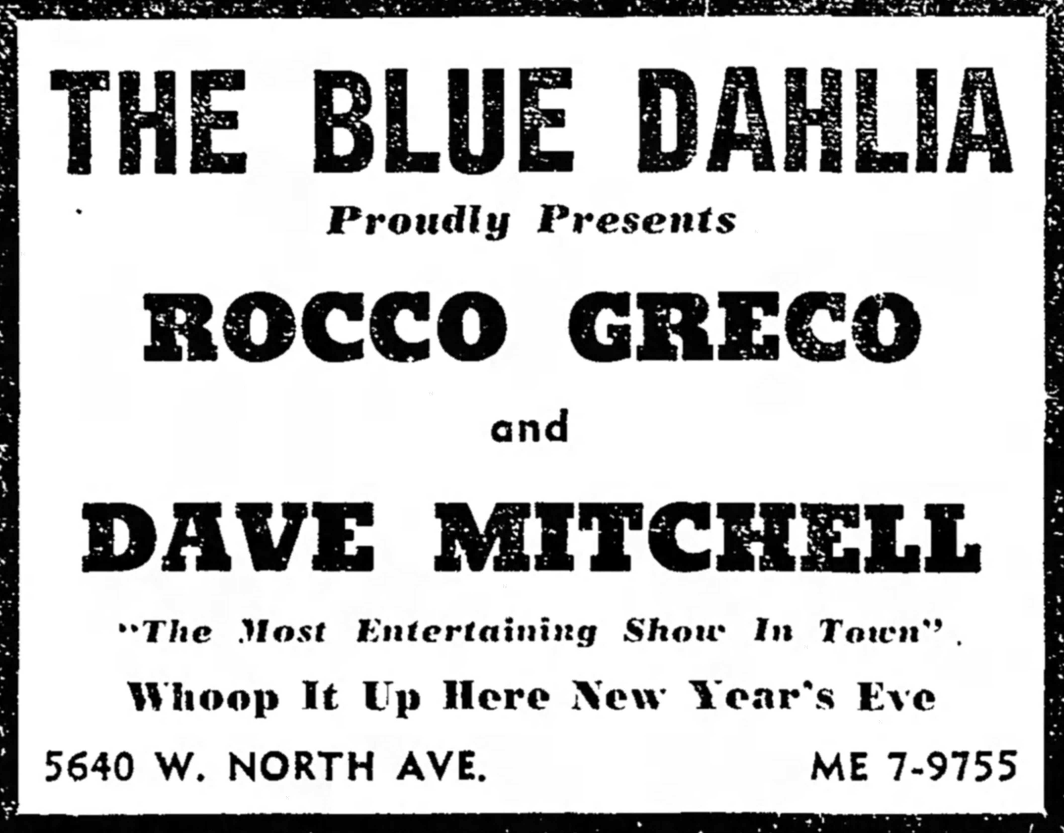 Rocco Greco, Dave Mitchell at the Blue Dahlia, 5640 W. North Ave. – The Garfieldian, December 28, 1961 April 11, 2018April 22, 2018 / Pizza Hounds