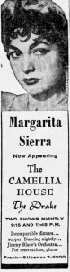 Margarita Sierra at the Camellia House at the Drake – Chicago Tribune, December 28, 1956 April 19, 2018April 27, 2018 / Pizza Hounds