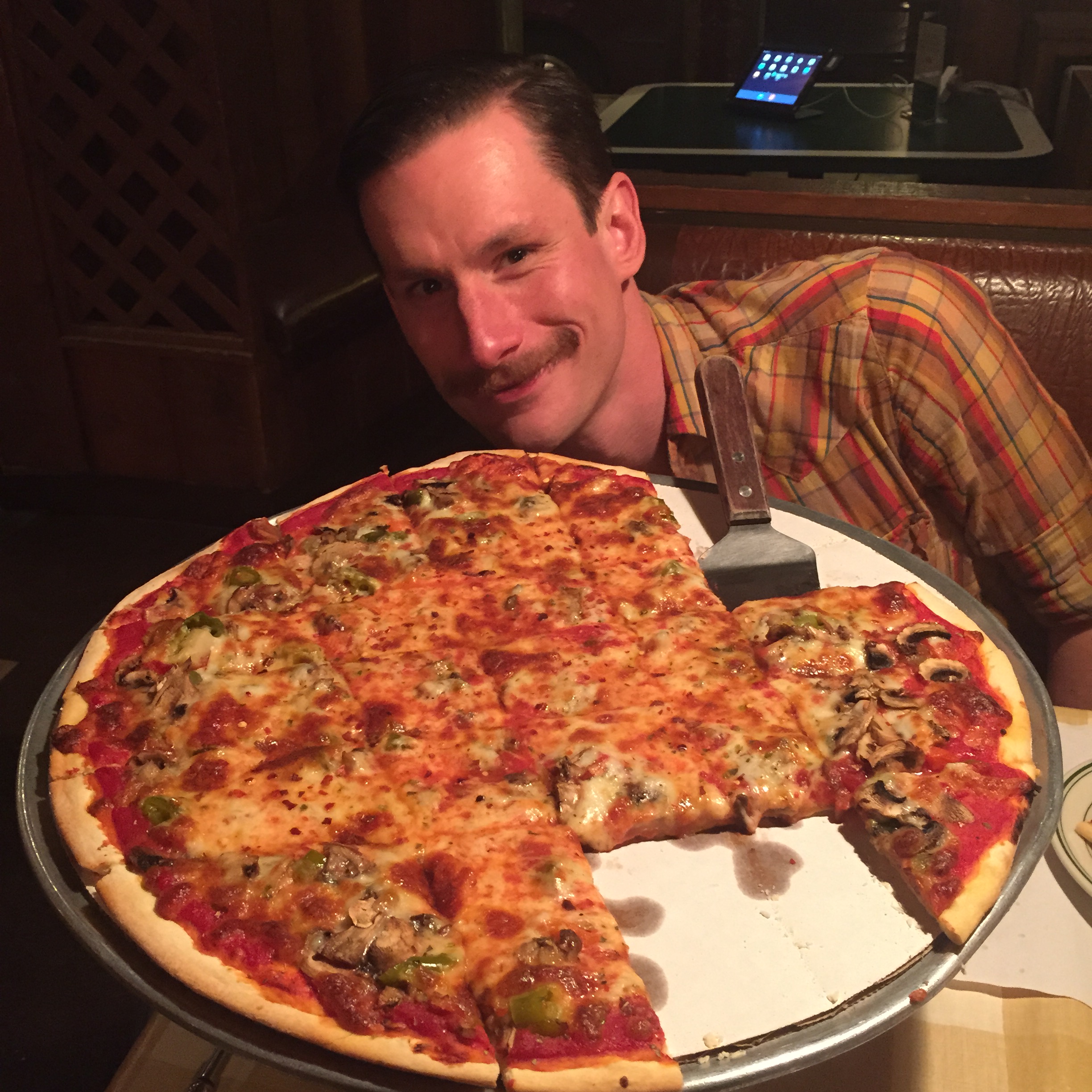 Frank’s Pizzeria serves good pizza that’s probably best enjoyed in their classic dining room. Going there is a great opportunity to get a slice of somewhat slower and timeless version Chicago than the craziness that happens as one gets closer to the lake. For these all reasons, Frank’s Pizzeria has become a favorite spot for my friends Christian and Brittney. Christian eyes his prize below.