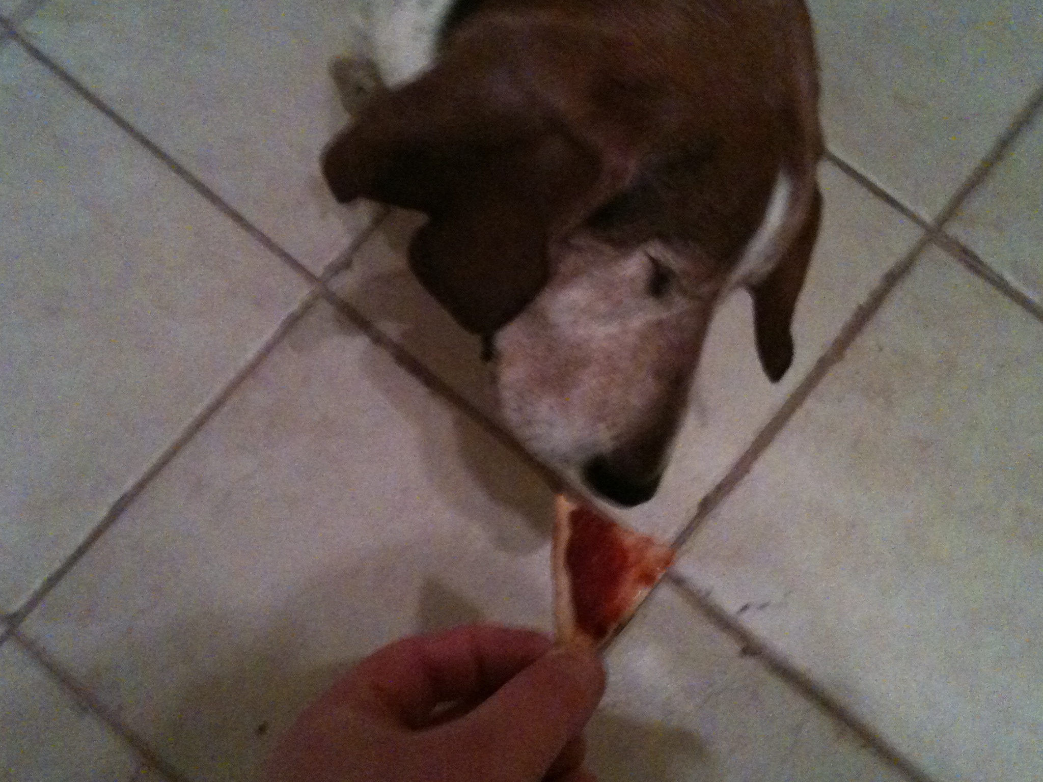 And of course the Pizza Hound needed his own piece (crust and sauce only)!
