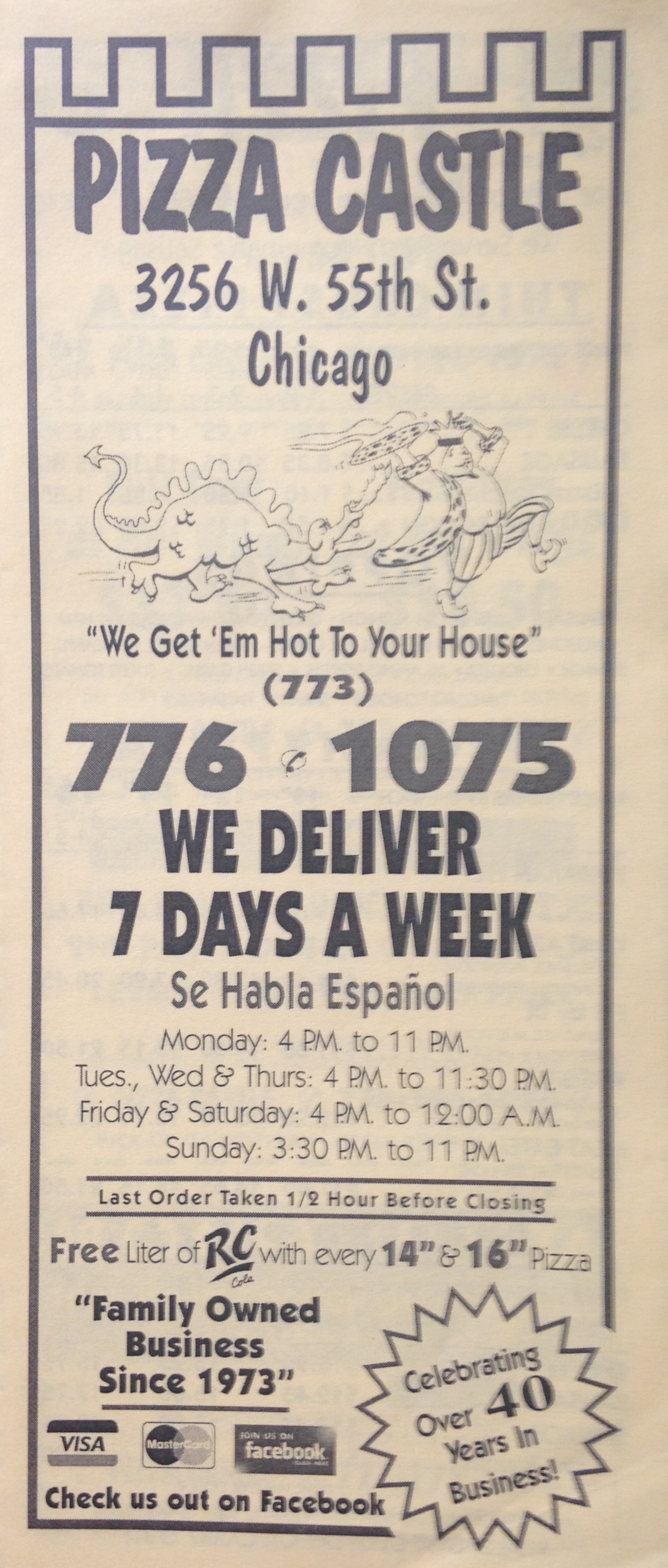 Pizza Castle is located at 3256 W. 55th St., Chicago, IL 60632